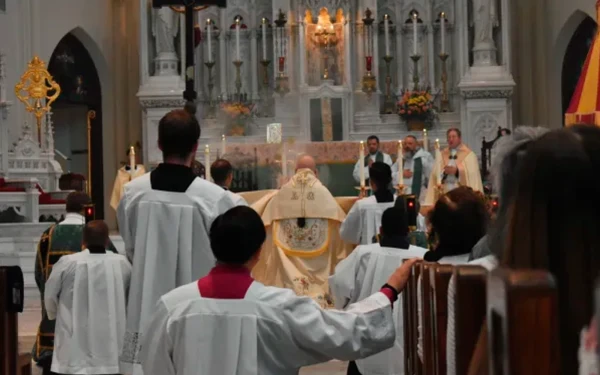 "Cada vez que ustedes y yo contemplamos la Eucaristía, cada vez que ustedes y yo vemos la Eucaristía, lo que vemos es pan y vino", afirmó Mons. Aquila en su homilía. "Pero lo que nosotros creemos es [extraño para el mundo]. Es verdaderamente el Cuerpo, la Sangre, el Alma y la Divinidad de Jesucristo".