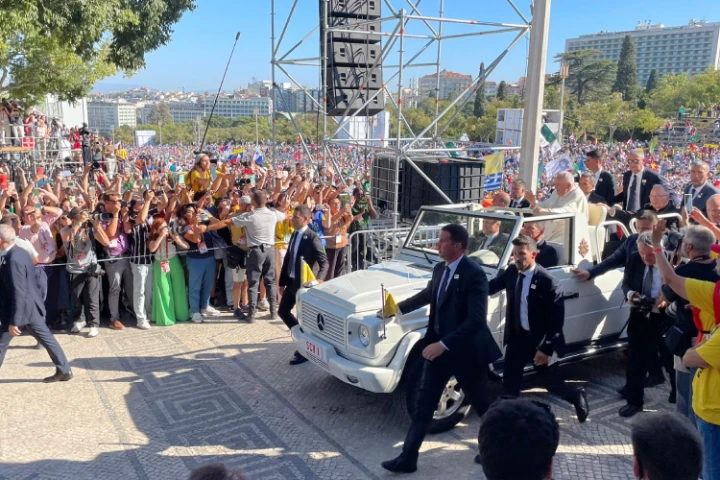 El Papa Francisco pronunció este viernes un discurso ante miles de jóvenes que participaron del Vía Crucis en el Parque Eduardo VII de Lisboa (Portugal), tras su salida de la Nunciatura Apostólica.