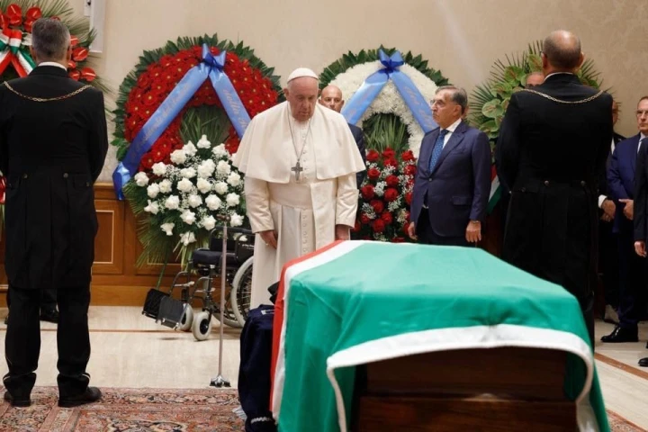 El Santo Padre se trasladó esta mañana al Palacio Madama, sede del Senado italiano en Roma, para orar ante el féretro del líder político fallecido a los 98 años, a quien el Pontífice definió como “un servidor de la patria”.