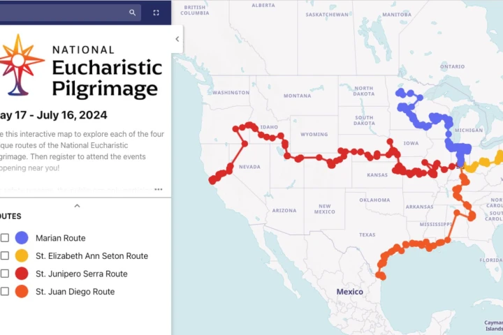 Para participar en un evento cerca de usted, aquí hay una guía para encontrar todas las paradas a lo largo de las cuatro rutas de peregrinación que atraviesan el país y que convergen en el Congreso Eucarístico Nacional en Indianápolis, el 16 de julio.