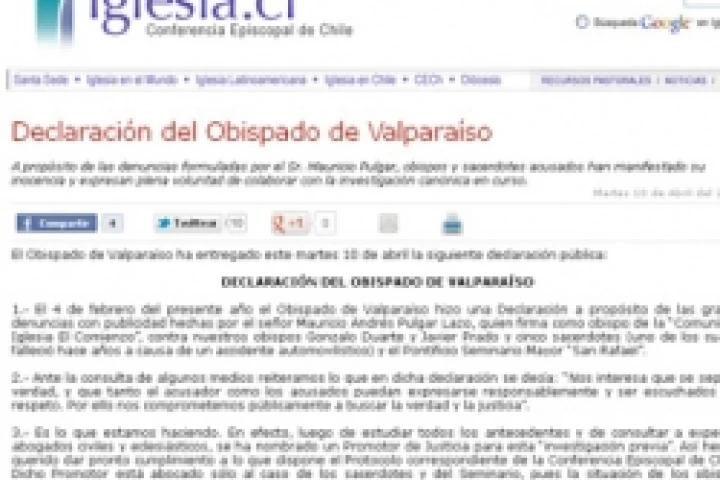 El Obispado de Valparaíso en la quinta región de Chile respondió a través de una declaración a las acusaciones hechas por un ex seminarista y ahora líder protestante, que ha denunciado a dos obispos y 5 sacerdotes por supuestos abusos sexuales.