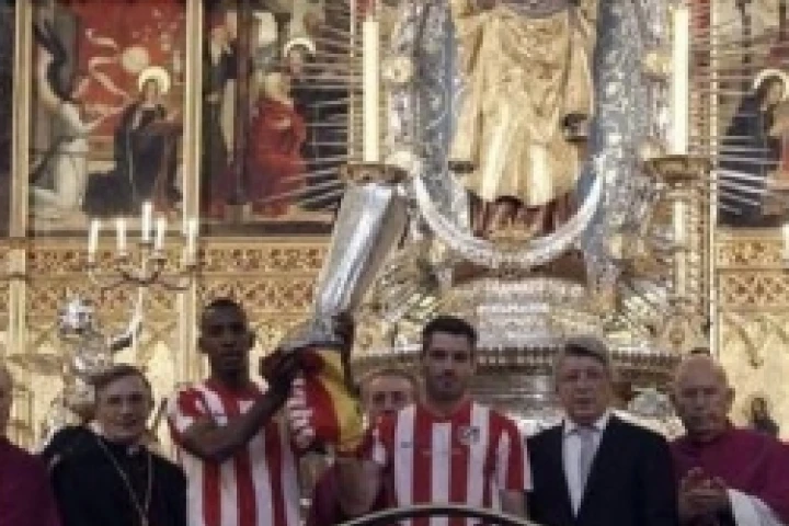 El Atlético de Madrid ofreció el jueves el título de la Europa League, conquistado en Bucarest al derrotar en la final al Athletic de Bilbao por 3-0, a la Virgen de la Almudena, Patrona de la capital de España, en el que fue el inicio de los festejos por la conquista del trofeo continental el segundo en los últimos tres años.