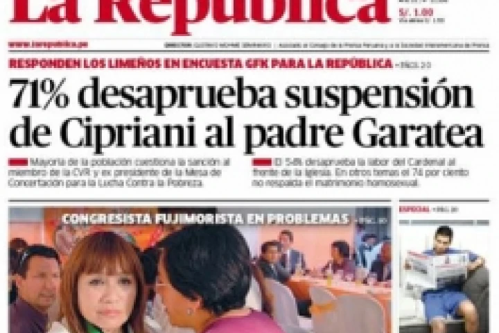La República, que ha publicado varios comunicados de apoyo al sacerdote –como el firmado por un grupo de agnósticos y promotores del aborto vinculados a la PUCP–, publicó hoy en primera plana que el "71% de la población" desaprueba la medida tomada por el Cardenal.