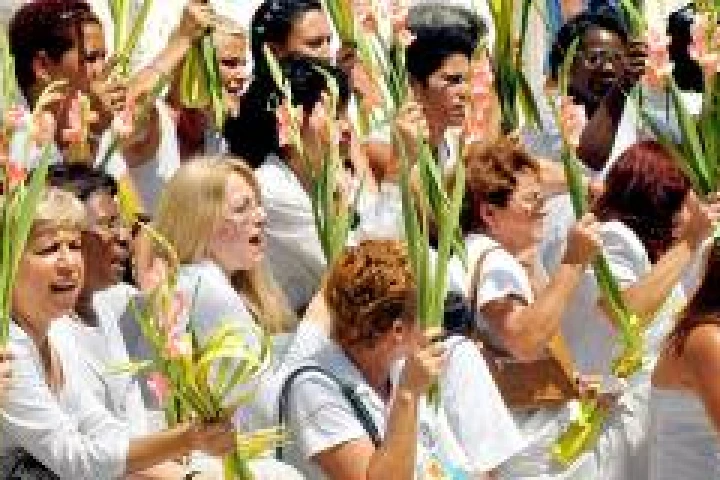 Pese a la detención de 24 de sus miembros, Las Damas de Blanco rindieron un homenaje este domingo a su líder fundadora Laura Pollán, en el primer año de su muerte, asistiendo a una Misa y marchando por las calles de La Habana (Cuba).