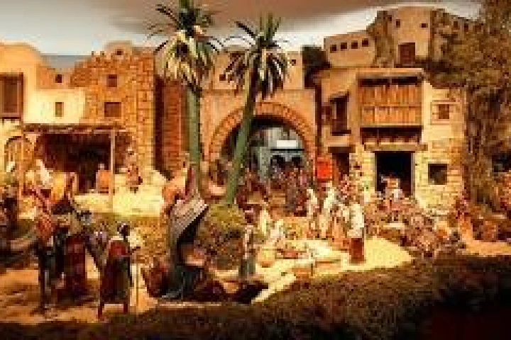 En las escenas de los dioramas se representan edificios como el castillo de Herodes, algunos personajes realizando oficios como vendedores, posaderos y alfareros o soldados romanos, entre otros.