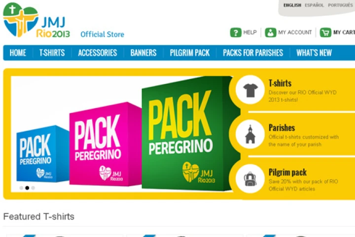 Fieles de todo el mundo podrán recibir en sus casas los productos oficiales de la Jornada Mundial de la Juventud Río 2013, a través del sitio web de ventas internacionales lanzado recientemente.