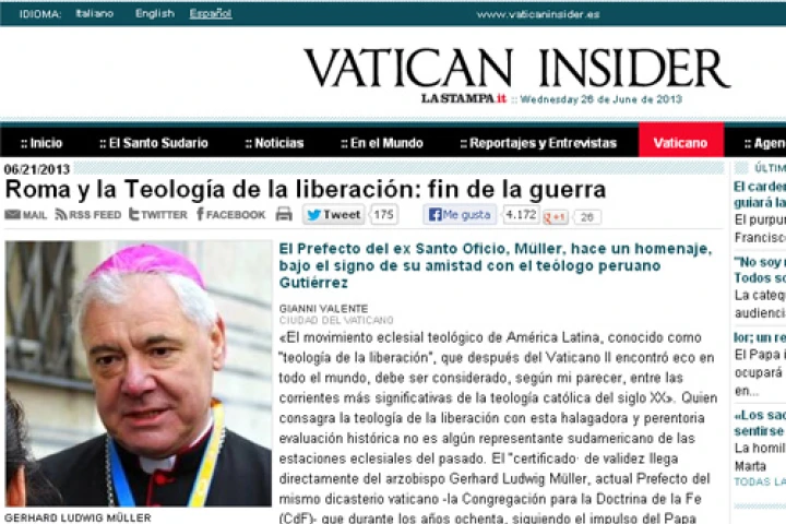 Valente declara el fin de todo debate teológico sobre la controvertida teología de fuertes rasgos marxistas a partir de la próxima publicación en italiano de "De la parte de los pobres, Teología de la liberación, Teología de la Iglesia". La obra, publicada en Alemania poco menos de una década atrás, recoge ensayos de Mons. Muller y de Gustavo Gutiérrez, tuvo escasa divulgación en su original en alemán y no se conoce en ningún otro idioma.
