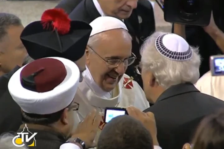 Luego de la bendición final, durante el procesional de salida, el Papa encontró a su paso a un representante musulmán, un rabino y líderes religiosos ortodoxos, con los cuales se dedicó a intercambiar palabras y gestos amistosos.