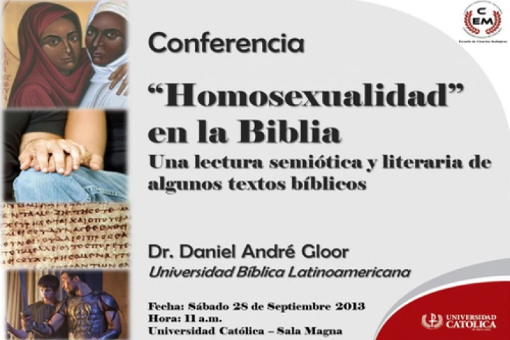 La Universidad Católica de Costa Rica organiza para el 28 de septiembre de este año la conferencia "Homosexualidad en la Biblia", dictada por el protestante Daniel André Gloor, en la que se manipulan citas bíblicas para justificar el estilo de vida homosexual.