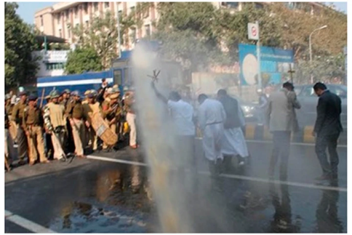 La policía usó potentes cañones de agua sucia a presión contra los manifestantes y metió en furgones y autobuses a los líderes de la manifestación, arrestando al Arzobispo de Nueva Delhi, Mons. Anil Couto, los obispos protestantes Alwan Masih (anglicano) y Roger Gaikwad, el líder evangélico Vijayesh Lal y el católico John Dayal, secretario general del All India Christian Council, entre otros líderes.