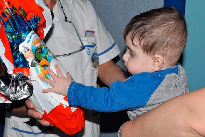 Según fuentes del hospital, un camión proveniente del Vaticano repleto de estos huevos de chocolate llegó al centro médico durante la Semana Santa y su contenido fue repartido entre los niños de la sección de oncología.