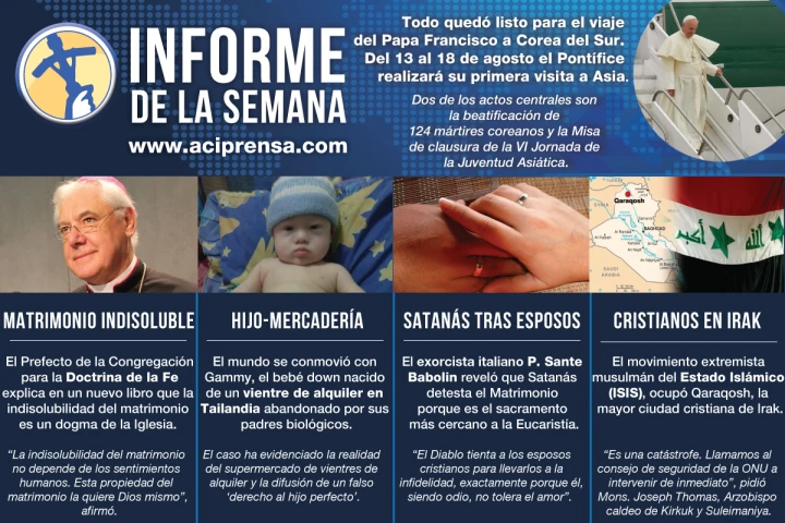 Entre los actos en los que participará se encuentran la beatificación de 124 mártires coreanos y la Misa de clausura de la VI Jornada de la Juventud Asiática.