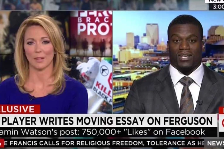 Benjamin Watson, jugador estrella de los New Orleans Saints en la NFL (Liga de Fútbol Americano Nacional), concedió el 28 de noviembre, a través de un enlace, una entrevista en vivo a la conductora Brooke Baldwin en CNN sobre los disturbios en Ferguson y una publicación que hizo en su página de Facebook sobre el tema del racismo.