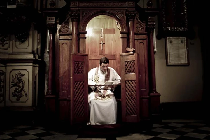 Y en una de esas iglesias, ese confesionario cuenta con siete confesores fijos que se turnan cada día de la semana desde las 22:00 a las 23:00. El vidrio de la puerta del sacerdote no es transparente, de forma que no ve quien entra o sale del confesionario.
