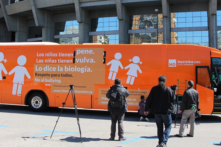 La campaña #ElBusDeLaLibertad comenzó el pasado 27 de febrero en Madrid, capital de España con la circulación de un autobús en el que se podía leer, "Los niños tienen pene. Las niñas tiene vulva. Que no te engañen. Si naces hombres, eres hombre. Si eres mujer, seguirás siéndolo".