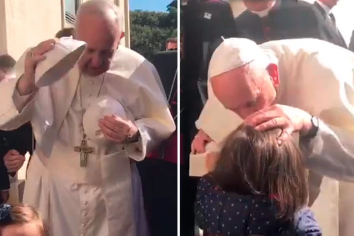 Eso fue lo que hizo con la pequeña, solo que ahora el Papa añadió un gesto más y se lo colocó él mismo sobre la cabeza a la niña, lo que generó las risas de los guardias de seguridad y el Obispo de Leiría-Fátima, Mons. Augusto dos Santos Marto, que lo acompañaba.