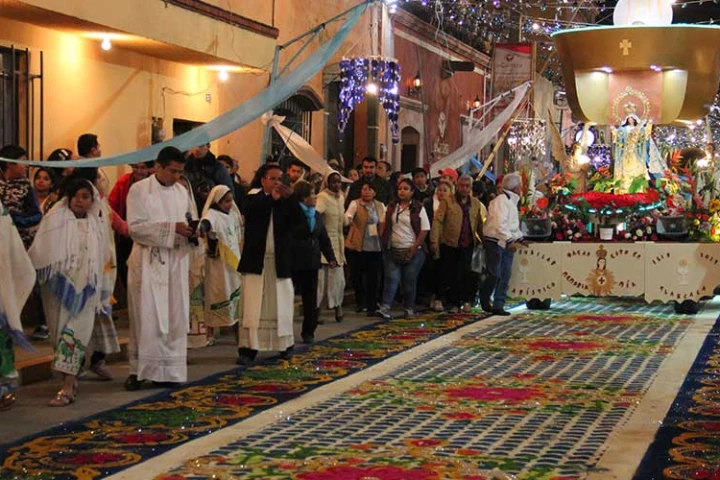 "Cada año, las calles de este pueblo mágico se llena de alfombras de aserrín de colores, música, alegría, pero sobre todo de la fe de miles de personas que se acercan a la Santísima Virgen para agradecerle algún favor o pedir su intercesión", señaló la diócesis mexicana.