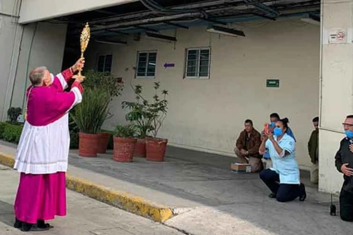 En medio de la pandemia de coronavirus COVID-19 que golpea México, Mons. Francisco Javier Chavolla, Arzobispo de Toluca, visitó distintos hospitales y dio la bendición con el Santísimo Sacramento a los profesionales de salud, a los enfermos y a sus familiares.
