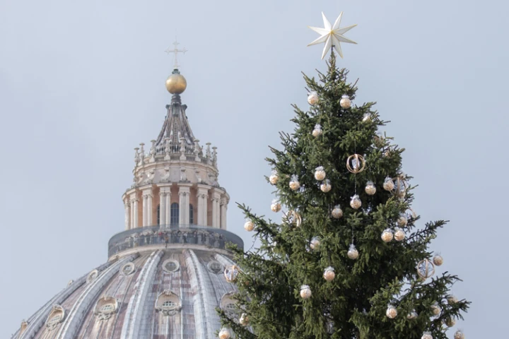 El árbol que está colocado al lado del pesebre en la Plaza San Pedro este año procede de Ándalo en el Trentino, lugar que forma parte de los Dolomitas de Paganella, al norte de Italia.
