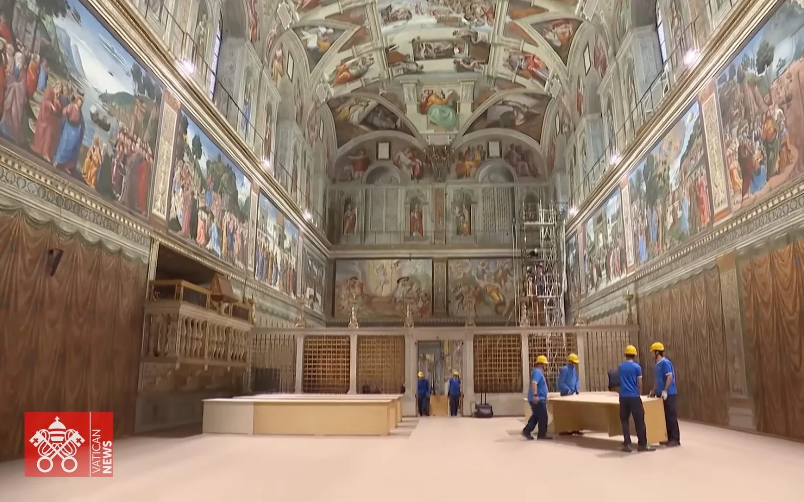 Carpinteros, herreros, montadores de estructuras, instaladores, floristas y personal de limpieza. Unas 60 personas trabajan contrarreloj para acondicionar la Capilla... Leer más