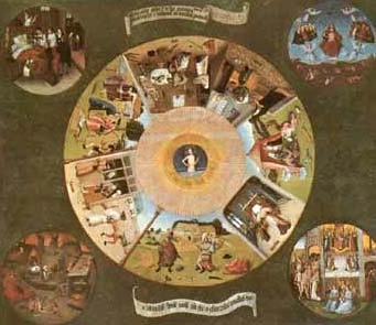 inferior, y en sentido contrario del reloj): Ira, soberbia,