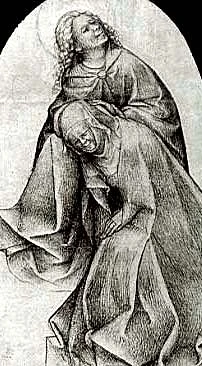 Esta pareja de personajes pintados por el Bosco son sin duda la Virgen María y San Juan Evangelista. El grupo es posiblemente un estudio para una Crucifixión, a cuyo pie estaría María, llorando desconsolada a la que trata de tranquilizar San Juan, que también tiene el rostro descompuesto por el dolor. El Bosco ha buscado entre los recursos de la pintura flamenca para realizar una espléndida muestra de plegados y sombras en los vestidos, a la mejor manera tradicional. Sorprenden los rostros, por las muecas que producen en los personajes el llanto y el desconsuelo. Esta expresividad en busca de lo patético y de la compasión del espectador también es un recurso típicamente flamenco, que hoy nos parece desmesurado pero que en su época traducía según un código muy estricto determinados sentimientos o situaciones.