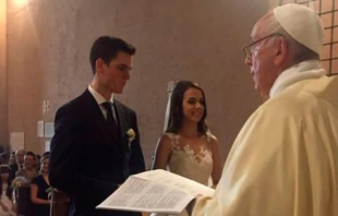 El Papa Francisco sorprendió el sábado 14 de julio al presidir el matrimonio entre un ex guardia suizo y su novia, quien trabajó en los Museos Vaticanos.