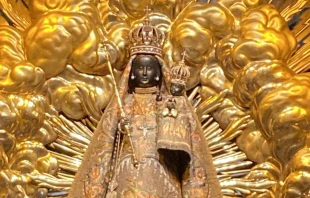 “Una persona confundida desvistió violentamente a la Virgen Negra” en la Capilla de la Gracia del famoso monasterio suizo de Einsiedeln, informó el monasterio. “La venerada imagen de la gracia del siglo XV resultó ligeramente dañada”