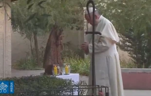 Luego de dejar el aeropuerto internacional Arturo Merino Benítez, el Papa Francisco realizó su primera actividad en Santiago de Chile al visitar la parroquia San Luis Beltrán, donde rezó unos minutos frente a la tumba de Mons. Enrique Alvear Urrutia, el llamado “Obispo de los pobres”, cuya causa de canonización está abierta.