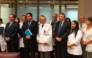 Un grupo de médicos pro-vida llegó al Congreso Nacional en Valparaíso (Chile), para manifestar su compromiso de no realizar ni apoyar el aborto, en medio del debate sobre la idea de legislar la despenalización de esta práctica que se retomará este 12 de octubre en la Comisión de Constitución de la Cámara del Senado.
