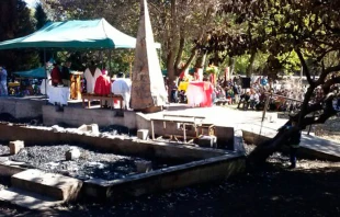 “¡Habrá escombros materiales, pero la Iglesia sigue viva!”, exclamó Mons. Francisco Javier Stegmeier, Obispo de Villarrica, ante los más de 600 fieles que asistieron a la Misa de Domingo de Ramos en el lugar donde antes se encontraba el Santuario San Sebastián de Vilcún en el sur de Chile, incendiado y destruido la madrugada del 8 de marzo.