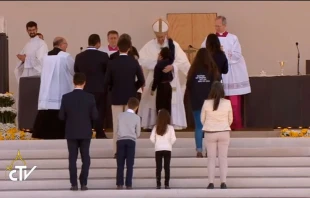 La familia de Lucas, el niño brasilero curado milagrosamente por intercesión de los nuevos santos Jacinta y Francisco, dos de los tres pastorcitos de Fátima, fue la encargada de llevar al altar los dones del pan y el vino durante la Misa de canonización celebrada este sábado 13 de mayo por el Papa Francisco.