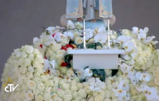 Una procesión con la imagen de la Virgen de Fátima y las reliquias de San Francisco y Santa Jacinta Marto abrieron la jornada de celebración por los 100 años de las apariciones de la Virgen de Fátima y la Misa canonización de estos santos Pastorcitos.