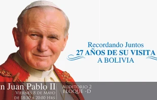 El Arzobispado de la Paz realiza hoy a las 6:30 pm en el Auditorio 2 del Bloque "D" de la Universidad Católica Boliviana San Pablo un evento recordando el 27° aniversario de la llegada de San Juan Pablo II al país en 1988.