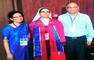 Una religiosa en la India salió por primera vez del convento de clausura en el que vive para asistir a la ceremonia de graduación del doctorado en Ingeniería Espacial que siguió en el Instituto de Defensa de Avanzada Tecnología (DIAT) en Pune.