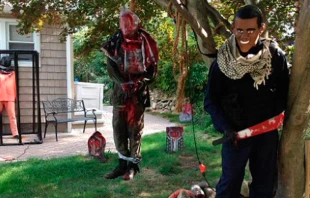 La representación de un piloto jordano antes de ser incinerado, hombres crucificados de cabeza con cuchillos clavados en el cuello y cadáveres de soldados estadounidenses con la bandera del ISIS, son algunos de los “adornos” usados en hogares estadounidenses para celebrar Halloween.
