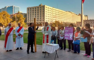 Trabajadores de distintas empresas junto a la Vicaría de Pastoral Social Cáritas realizaron un Vía Crucis por las calles del centro de Santiago de Chile.