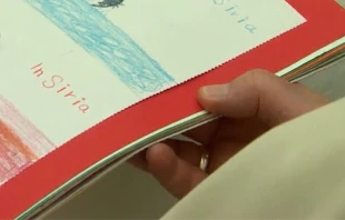 Este jueves el Papa Francisco tuvo un almuerzo con 21 refugiados sirios y recibió de regalo dibujos hechos por los niños. Una de las obras de los menores impactó al Santo Padre por mostrar “el drama de la guerra” que azota Siria y otros países de Medio Oriente.