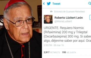 En los últimos días un tuit de Mons. Roberto Lückert, Arzobispo de Coro, se volvió viral luego que se viera obligado a pedir medicinas a través de la red social para ser tratado de su enfermedad, pues la grave crisis económica ha hecho que en Venezuela haya un 80 por ciento de fallas en el abastecimiento de medicamentos.