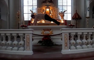 Un artista fue multado con 700 euros por el tribunal de la ciudad alemana de Saarbrücken después de publicar un video en YouTube en el que se le ve realizando 27 flexiones sobre el altar de la Basílica de San Juan.