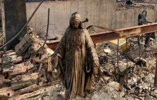 La Arquidiócesis de Denver (Estados Unidos) compartió una fotografía que se hizo viral, ya que muestra a una estatua de la Virgen María que permaneció de pie junto a los escombros de una casa quemada, durante el incendio forestal del jueves en Colorado.