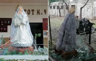Una imagen de la Virgen María quedó intacta luego de la explosión de un coche bomba fuera de las instalaciones de la Trigésima Brigada del Ejército Nacional de Cúcuta (Colombia), atentado que dejó más de 30 heridos.