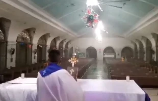 En un video que se ha vuelto viral en las redes, se puede ver al P. Virgilio Salas celebrando Misa a pesar de los fuertes vientos del tifón Odette, que golpearon la iglesia del Inmaculado Corazón de María en Bohol (Filipinas) este 16 de diciembre.