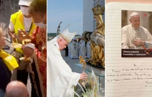 Al concluir la Misa en el Santuario Nacional de Šaštín (Eslovaquia), el Papa Francisco regaló una “rosa de oro” a Nuestra Señora de los Siete Dolores, un antiguo gesto que expresa reverencia a la Virgen María.