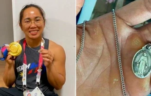 La levantadora de pesas Hidilyn Diaz pasó a la historia al ganar la primera medalla de oro en la historia de Filipinas. Ella recibió la presea dorada de las olimpiadas acompañada de la Medalla Milagrosa, que muestra su fuerte fe católica.