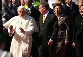 El Papa Benedicto XVI recibe la bienvenida del Presidente alemán Horst Koehler (3º der), a su llegada al aeropuerto de Münich. El Santo Padre retorna a sus raíces, iniciando un nostálgico viaje de seis días a su tierra natal y a algunos de sus lugares mas tradicionales.