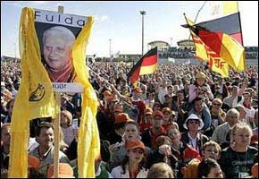 Miles de fieles dan la bienvenida al Papa a su llegada al centro de convenciones de Münich. Benedicto XVI advirtió que el mundo moderno se estaba volviendo “sordo” al mensaje de Dios, durante la primera misa al aire libre de su visita a su tierra natal.