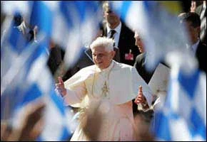 Jóvenes dan la bienvenida al Papa Benedicto XVI a su llegada para la celebración de la Misa en el campo ferial de Münich.