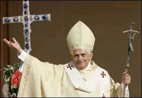 El Papa Benedicto XVI saluda a los fieles a su llegada al patio de la capilla donde celebró la misa al aire libre en Altötting, al sur de Alemania, a 70 km. al este de Münich. El Papa alemán realiza una visita de seis días a su tierra natal.
