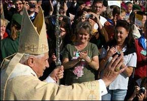 El Papa Benedicto XVI saluda a los fieles durante su llegada a la Misa en Altötting, el corazón religioso de Baviera, Alemania.